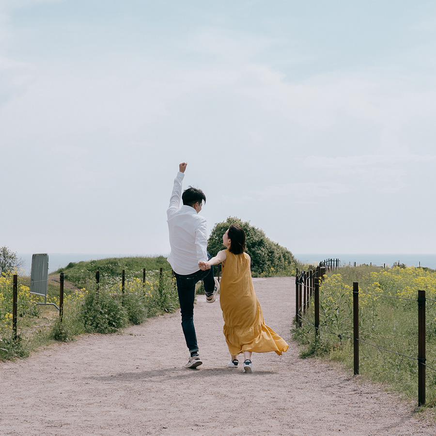 写真が苦手ということもあり、初めてのカップル写真撮影で始めはとても緊張していましたが、お話ししながら街を巡っているうちに楽しく終えることが出来ました。肩の力が抜けたとても自然な笑顔が写真に写っているのを初めて見て2人でびっくりしました笑。