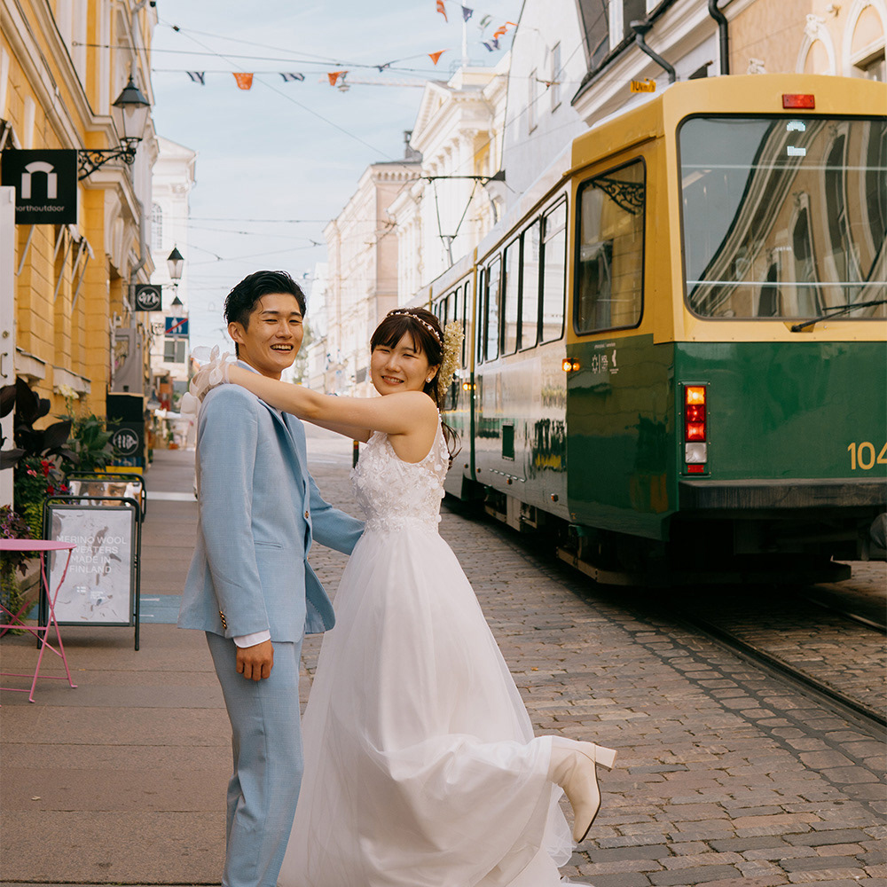 プランの提案から、服装やヘアサロンの紹介まで、丁寧に打ち合わせをしていただけてとても助かりました。トゥルクでの撮影も落ち着いた雰囲気で、リラックスして進めることができて良かったです。